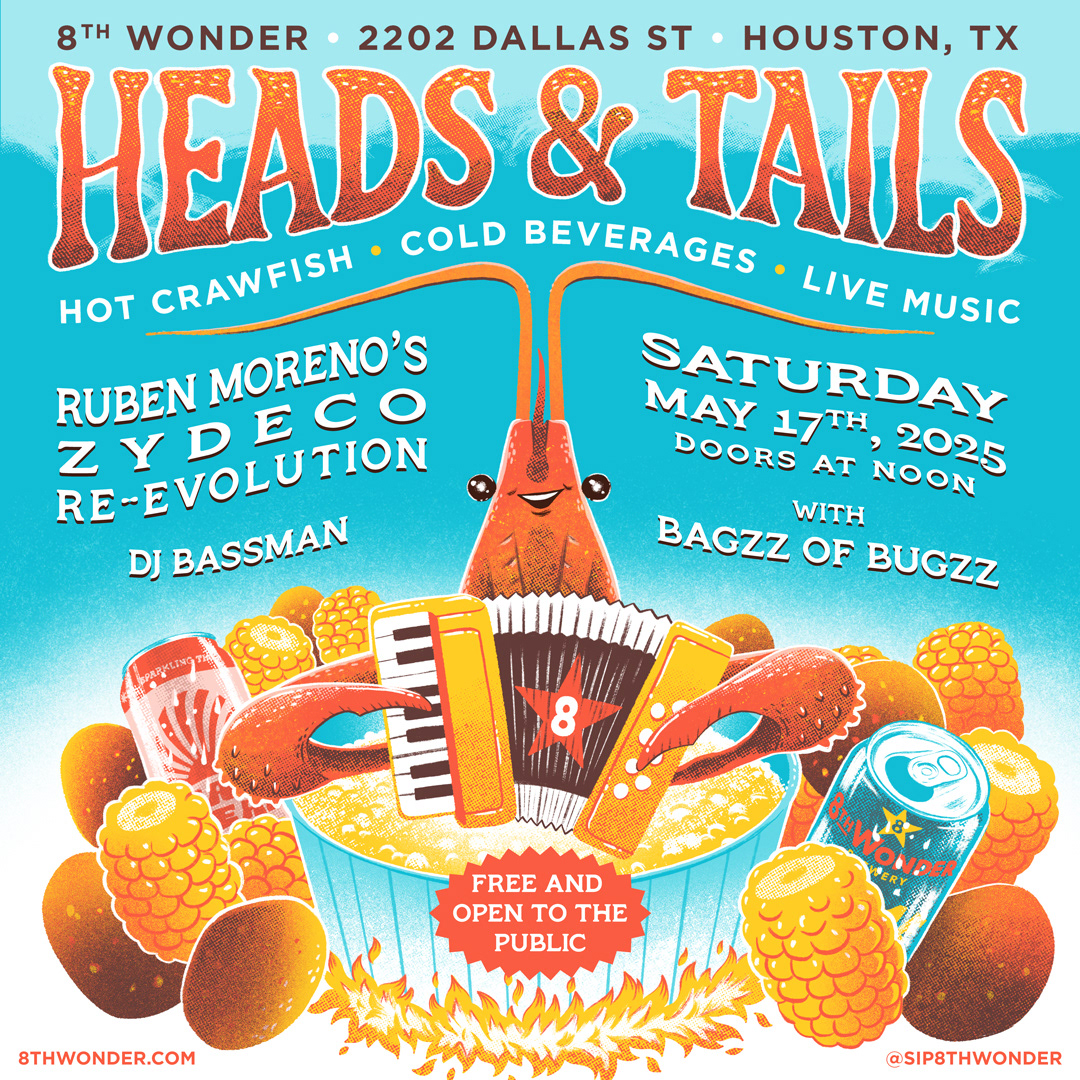 Poster design to promote the Heads & Tails annual crawfish feast at 8th Wonder Brewery in Houston, TX. I formatted this poster for print and social.